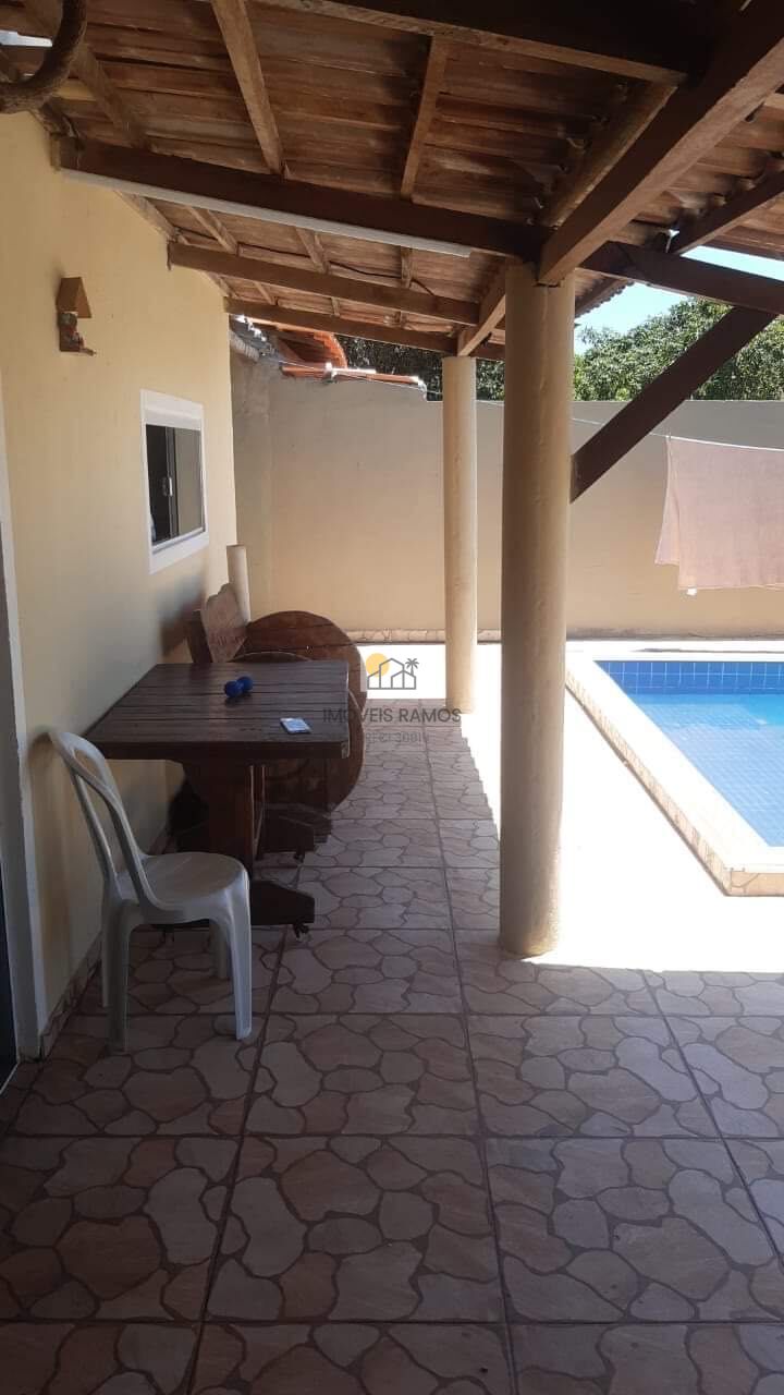 lado da praia são três quartos uma suíte, dois banheiros sociais e quiosque piscina de alvenaria de 7m, garagem para três carros área lateral na varanda, área de serviço fundo amplo varanda na frente.